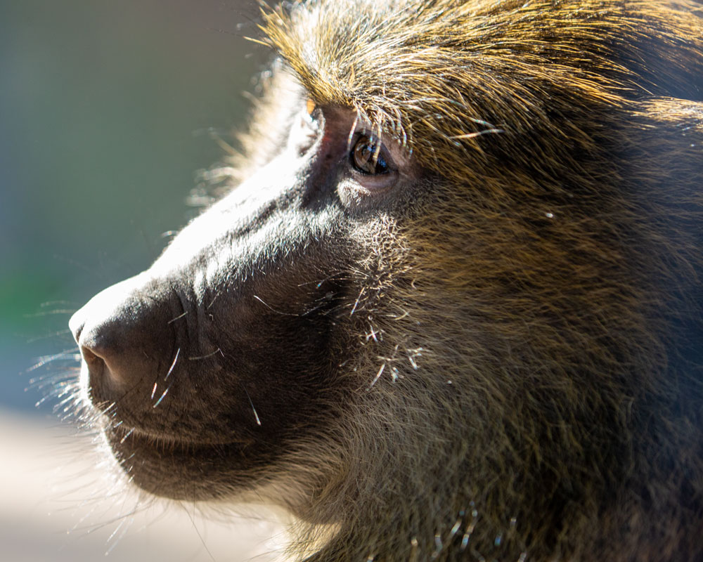 Speaking of fur, these curious primates get their name from their grey-green olive color. Visitors may also notice the baboons’ hairless rumps, which are made up of thick layers of skin. Their padded bottoms help make the monkeys comfortable while they are sitting in trees.