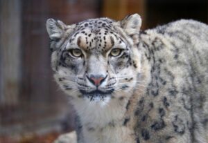 Prowl, prowl, purr, purr! Visitors watch a snow leopards leap from a snowy rock, searching for its next meal. Snow leopards are originally found in
