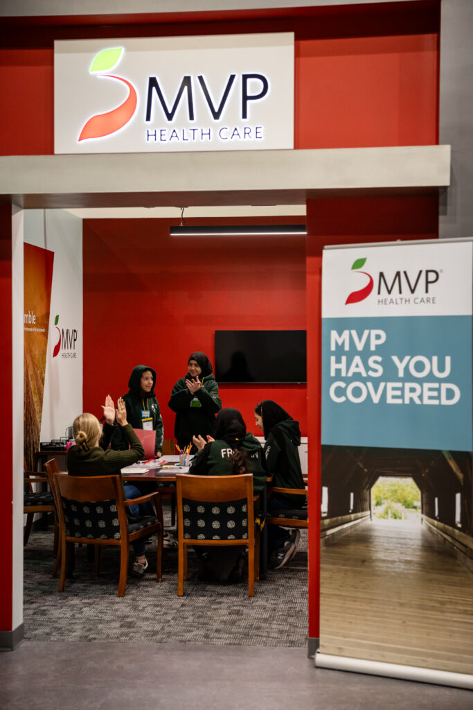 Students walk through the town, past Paychex, UR Medicine, LiDestri, and other local businesses, until they find their own company’s storefront and get right to work. Each CFO takes out a loan to pay employees, and teams come up with marketing strategies and advertise their products. Students at LeChase apply for building permits and measure a space for a community basketball court.